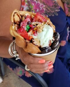 We know a thing or two about Ice Cream, and we know how to make it look and taste amazing. Take it from us, an Ice cream party is one of the more epic ways to make a gathering memorable since everyone likes a cold treat. Whether it is an Ice Cream Social for your employees or a birthday party for you child, you can’t go wrong with Ice Cream. Want to keep it basic? Maddlulu can cater your event with Ice Cream in a cup or waffle cone, with 4 flavors to choose from. If you want to go over the top, we recommend adding Bubble Waffle which has always been a hit for us. Bubble Waffle Cone gives you more option for toppings and looks and taste amazing when served. See images for ideas.